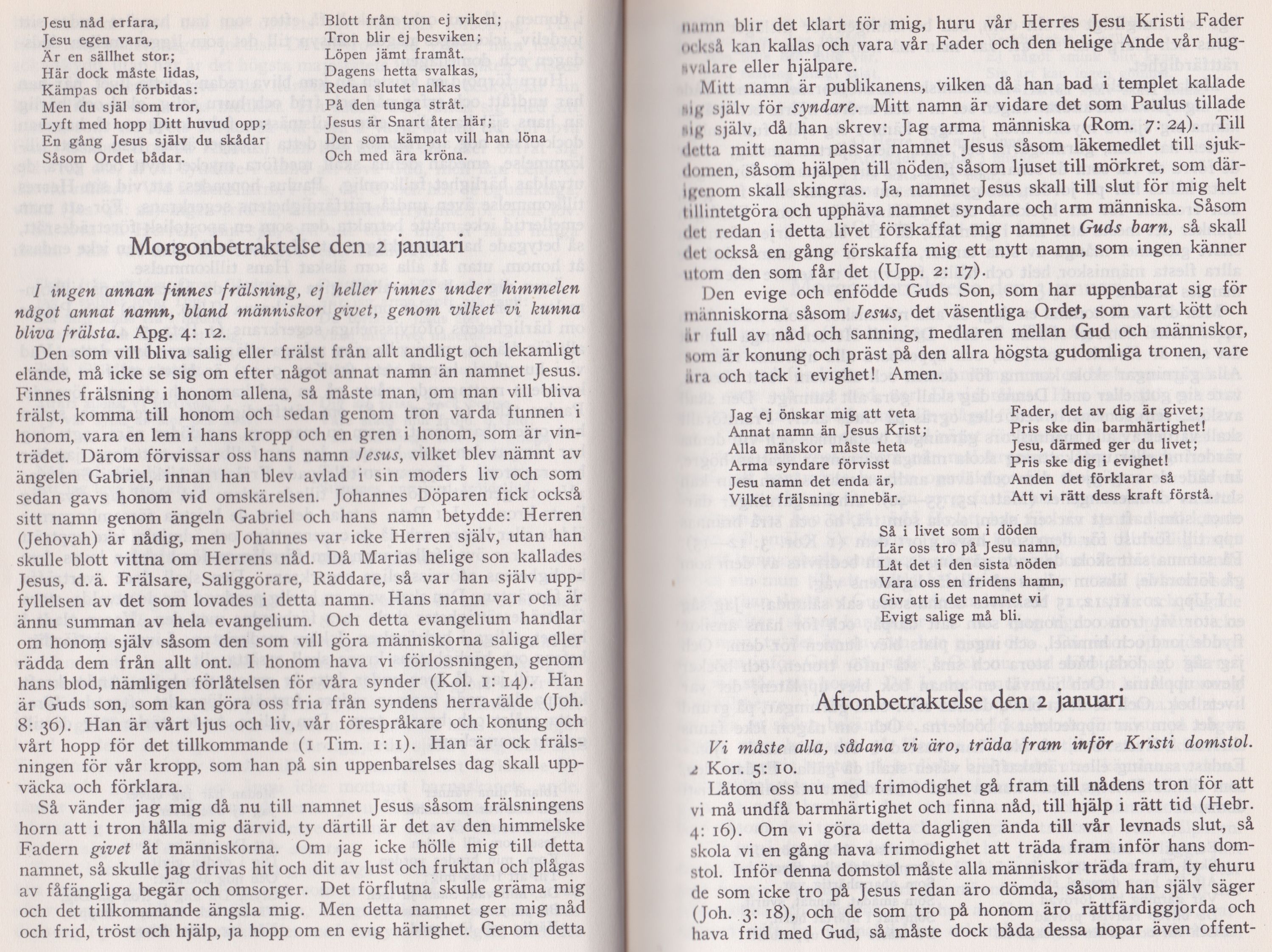 Das Hiller-Lied in schwedisch zur Morgenandacht des zweiten Januar heißt auf Deutsch übersetzt: